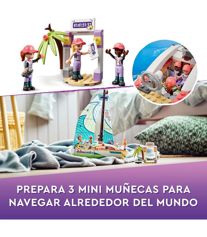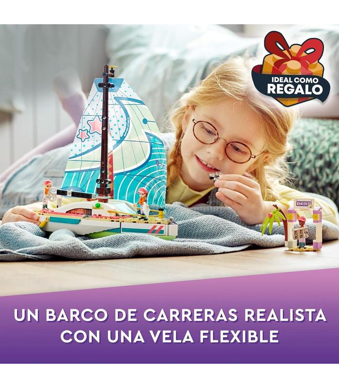Niñas y niños disfrutarán de increíbles aventuras en el mar con este set de construcción que cuenta con un barco de juguete con una vela flexible, una línea de meta, una isla y 3 mini muñecas LEGO Friends