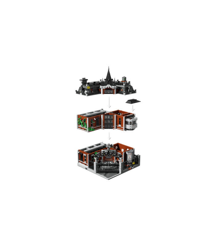 El set de construcción modular incluye 16 minifiguras LEGO: Batman, Batwoman™, Batwing™, Robin™, Mr. Freeze™, The Riddler™, Poison Ivy™, Catwoman™, Scarecrow™, Harley Quinn™, Bane™, The Joker™, The Penguin™, Killer Croc™ y 2 guardias de seguridad. La maqueta se separa en 3 segmentos (primera planta, segunda planta y tejado), y sus elementos desmontables facilitan el acceso al interior. Hay más sorpresas, como un furgón de traslado de presos, celdas que se abren y 65 pegatinas que hacen referencia al “lore” de Batman. Cada sección viene en una bolsa (24 en total), lo que convierte el set en un magnífico calendario de Adviento de Batman.