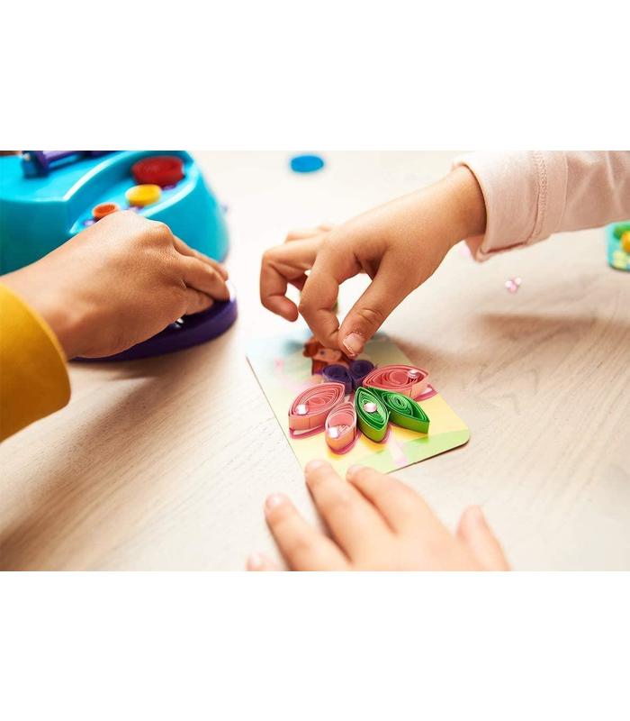 Transforma unas simples tiras de papel en arte. Enrolla, forma y crea, con simples tiras de papel de color y con la ayuda de la pieza principal los niños podrán crear propuestas artísticas muy creativas; de un resultado extraordinario gracias a las tarjetas con autoadhesivo dónde se pegaran paso a paso de forma simple las diferentes formas realizadas por la niña/niño; paso a paso con plantilla autoadhesiva y fácil de usar; sigue los pasos, aprende a hacer figuras y crea tu propia obra maestra