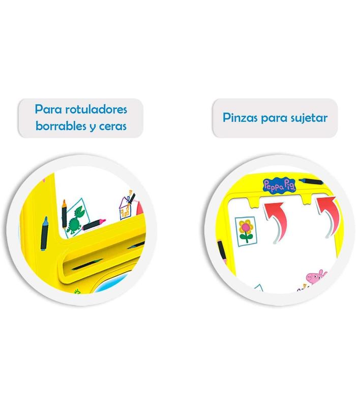 Esta pizarra está especialmente pensada para que los más pequeños empiecen a expresar su creatividad. Dispone de pinzas para sujetar el papel, cinco láminas de dibujo y ceras para colorear. Medidas: 59 X 33 X 75 cm