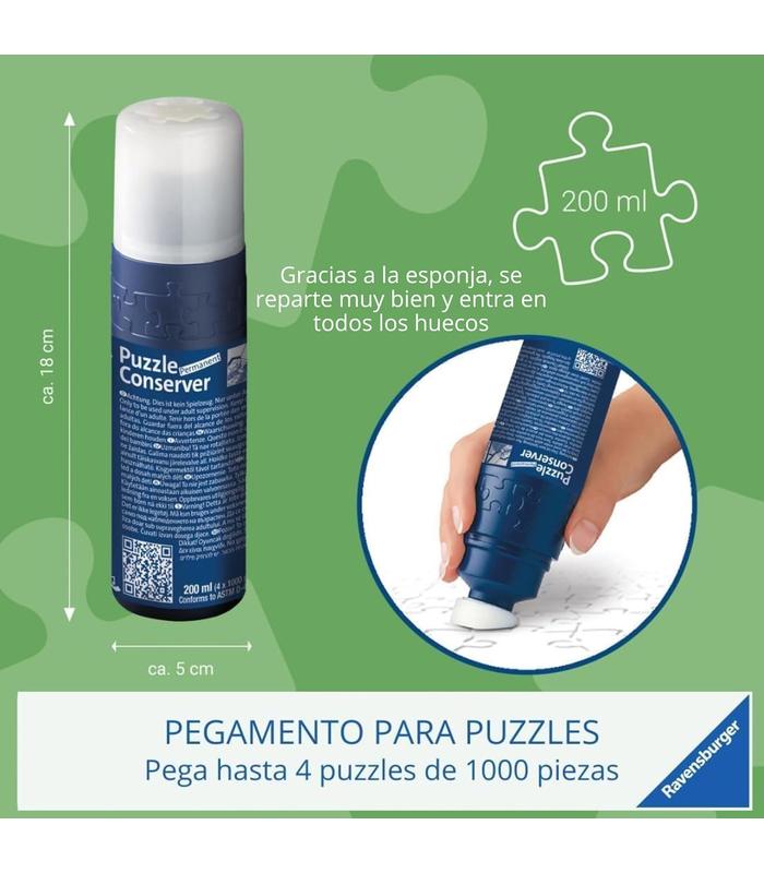 PEGAMENTO PUZZLE: El pegamento para puzzle líquido se puede aplicar directamente a la superficie del puzzle una vez montado. Uso exclusivo para Ravensburger Puzzle;