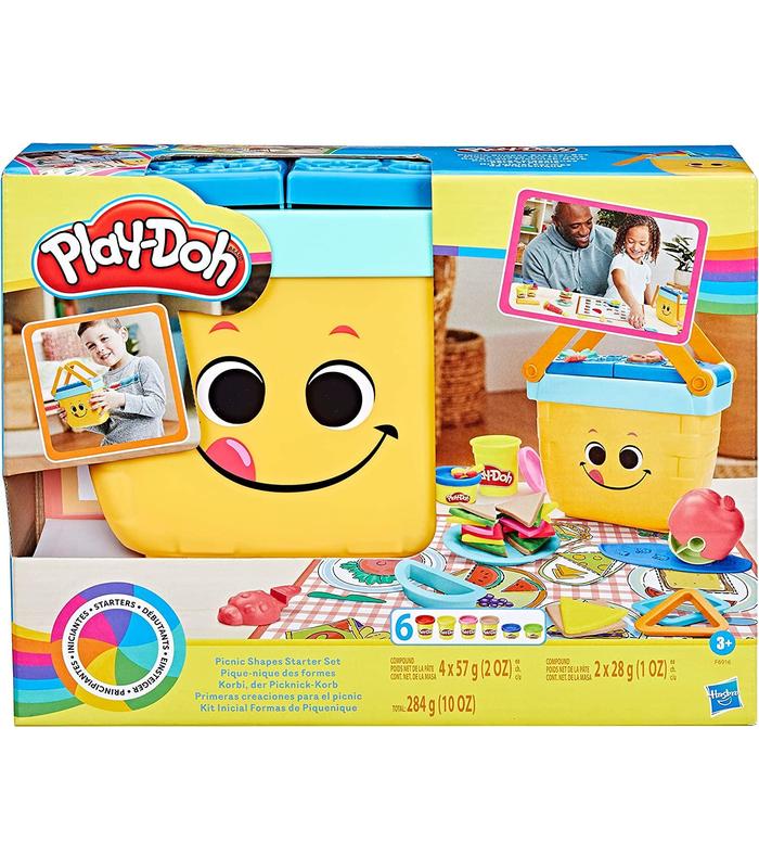 Contiene 6 colores PlayDOH: este juego de Play-Doh contiene latas de 28 g y 56 g con plastilina de juego azul, verde, rosa, rojo, marrón y amarillo (contiene trigo)