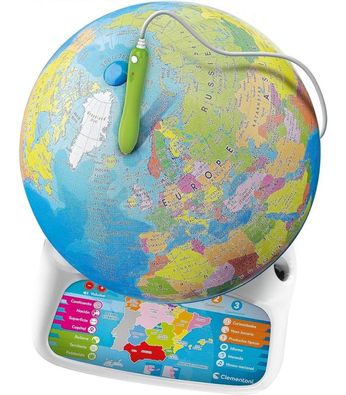 Para iniciar el viaje del conocimiento, el niño deberá apuntar el lápiz óptico de lectura sobre el globo terráqueo para descubrir toda la información del lugar seleccionado.