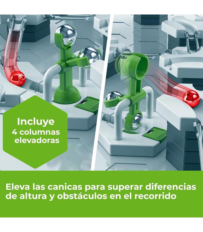 ROMPECABEZAS NIÑOS: Con el GraviTrax no hay límites para la creatividad; los numerosos componentes permiten construir nuevas pistas aún más complejas y hacer correr las canicas para niños a mayores alturas.