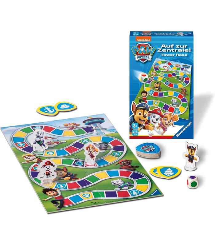 Divertida y emocionante carrera entre los héroes de la Patrulla Canina Chase, Marshall, Everest y Skye! El amigo del pelaje que llega primero a la central con un poco de suerte en los dados gana el juego