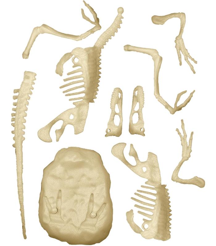 Diviértete encontrando y montando todos sus huesos y observando en la oscuridad el esqueleto luminoso de este dinosaurio óptimo; brillan en la oscuridad