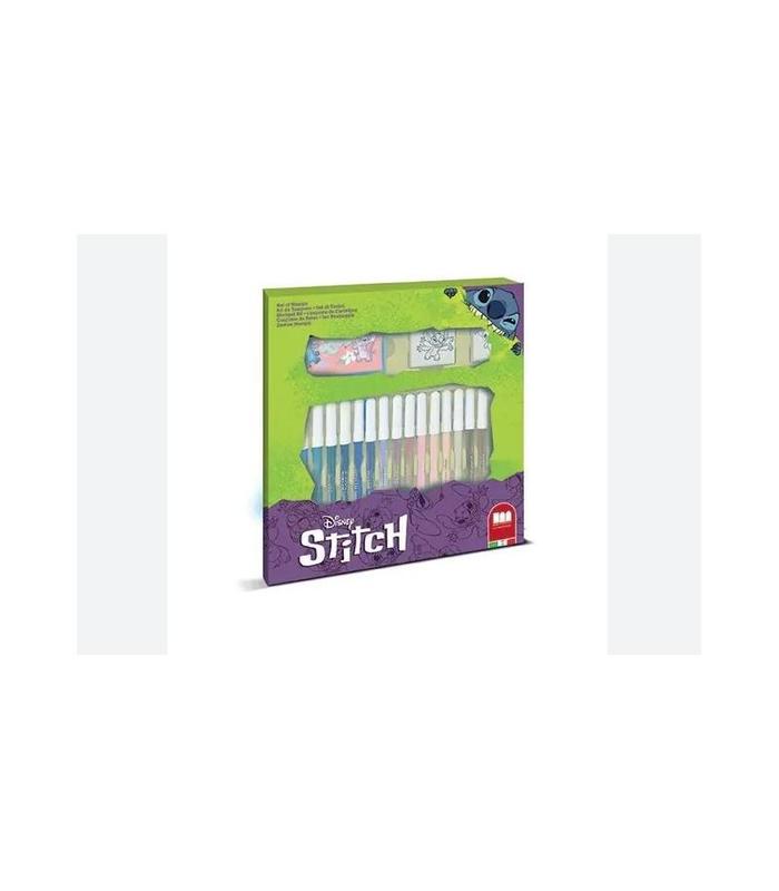 Set para colorear con Sellos - Stitch Set Stitch de Rotuladores Giotto con Sellos Venta al por mayor Suministros para quioscos, estancos y papelerías Stitch Set de Marcadores Giotto con Sellos Stitch Set de Marcadores Giotto con Sellos CONTIENE 18 rotuladores Giotto Turbo Color 1 álbum de dibujos 2 sellos de madera y goma 1 bloc lavable DIMENSIONES 28 CM 245CM X 3CM
