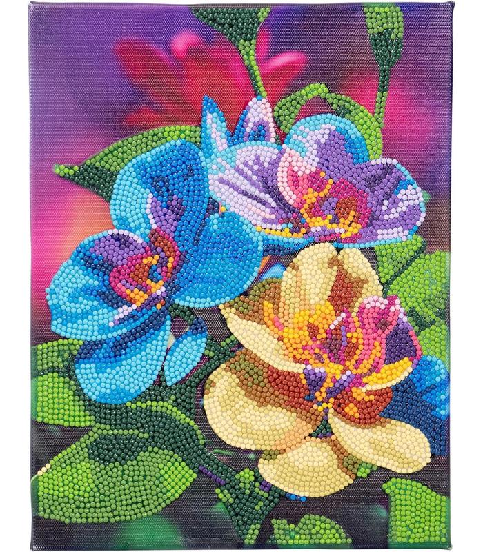 DIAMANTINY Level Up: es la actividad Crystal Art para crear mosaicos DIY, en relieve, con coloridas gemas 3D. Disponible en la versión Quadro Orquídea para gemmar.