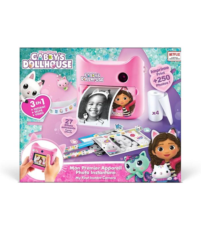 DISEÑO DE GABBY Y LA CASA MÁGICA: ¡Una cámara con un diseño único de Gabby y todos sus amigos! Los filtros y pegatinas suministrados también son del dibujo animado, ¡para que puedas personalizar tus fotos! Haz fotos en modo retrato, paisaje o selfie con la doble lente. Después, con un solo clic, imprímelas al instante en blanco y negro y crea tu propio estilo personalizándolas con los rotuladores y pegatinas incluidos.