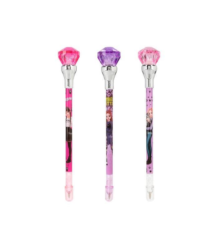 Para que escribir sea increíblemente hermoso. El remate de diamante de estos bolígrafos de TOPModel se ilumina al presionar la mina. Los bolígrafos son de color lila o fucsia y están adornados con diseños de guapísimas modelos y detalles de gatos. Los diamantes que los rematan son fucsia, lila suave o lila. Las pilas incluidas y las minas (azules) no son recambiables.