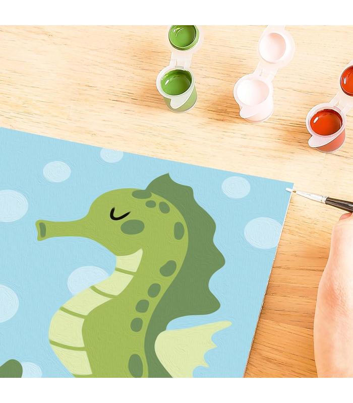 Cada vez que cambies de color, limpia el pincel con agua limpia y sécalo con papel absorbente. El marco ya está incluido. Cuando hayas coloreado todas las casillas enumeradas con los correspondientes colores, deja secar bien el dibujo.