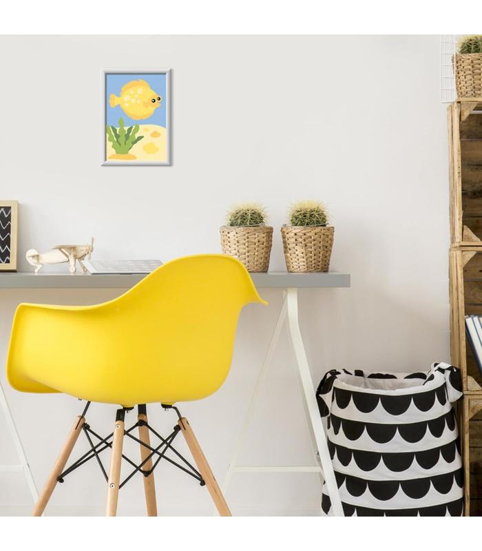 Cada vez que cambies de color, limpia el pincel con agua limpia y sécalo con papel absorbente. El marco ya está incluido. Cuando hayas coloreado todas las casillas enumeradas con los correspondientes colores, deja secar bien el dibujo.