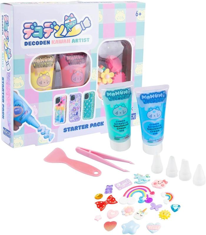 Decoden Starter Pack set para decorar la funda de tu teléfono con crema. Contiene: 2 cremas, boquillas, espátula, pinzas y amuletos. 2 versiones.