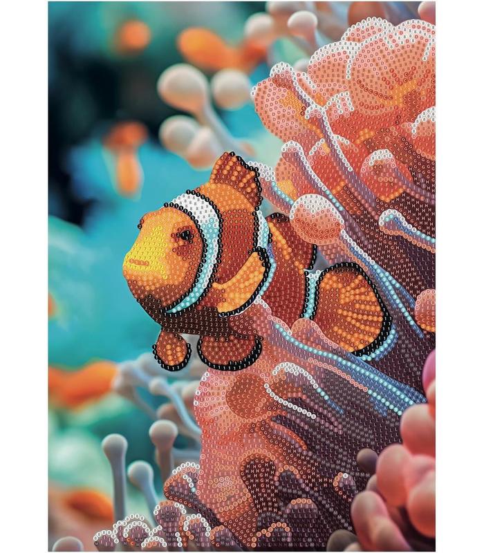 TÉCNICA: para decorar el mosaico del Pez Payaso debes utilizar la técnica "Crystal art, colorea con números", aplicando las gemas a los números. La hoja de instrucciones te guía en la aplicación.