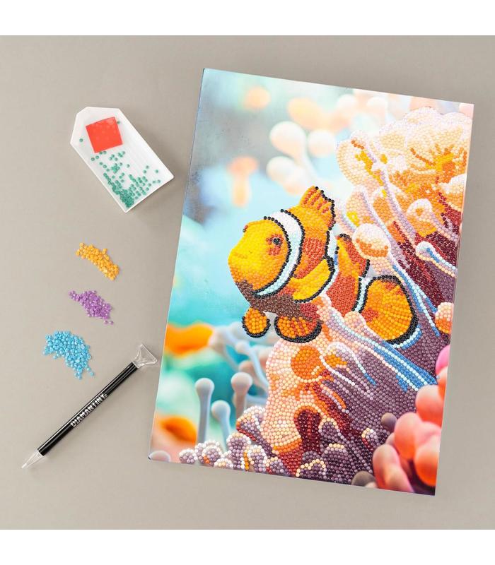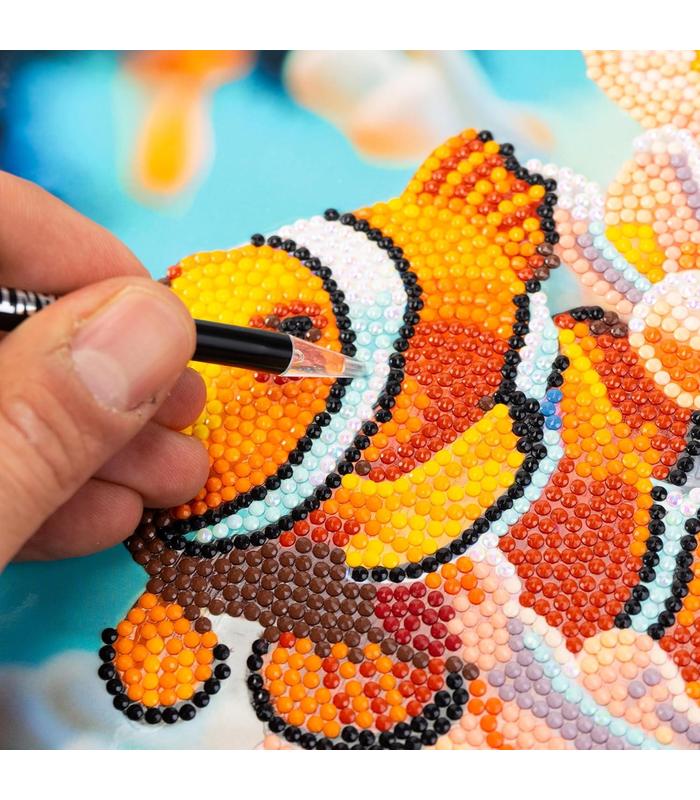 DIAMANTINY Level Up: es la actividad Crystal Art para crear mosaicos DIY, en relieve, con coloridas gemas 3D. Disponible en la versión MUNDO MARINO Clown Fish para gemmar.