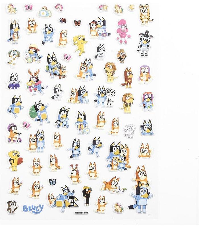 Incluye pegatinas con diseños originales de Bluey y todos sus personajes, perfectas para que los niños decoren útiles escolares, juguetes, libros, mochilas y mucho más con creatividad.