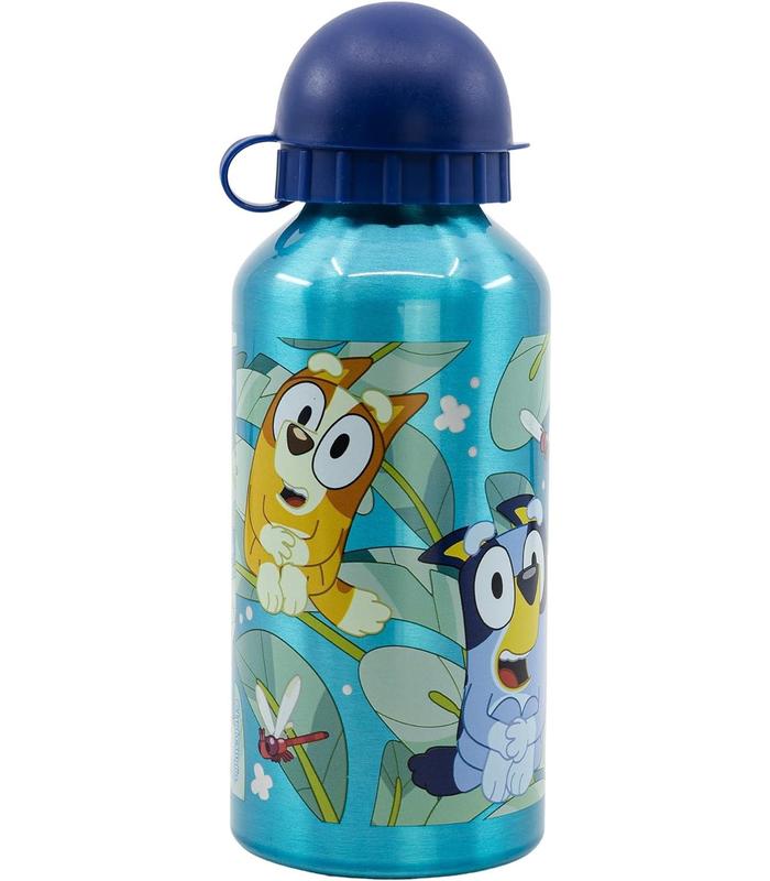 Stor Botella Alumini Bluey Resistente botella fabricada en aluminio, con la que los niños podrán beber de forma cómoda y segura, gracias a su boquilla y tapón de seguridad que evitará salpicaduras y derrames accidentales. El cuerpo va decorado con originales diseños basados en algunos de los personajes principales de sus series favoritas, lo que hará que los más pequeños de la casa quieran llevársela a cualquier parte. - Fabricada en aluminio - Tapón de seguridad - Capacidad: 400 ml - Licencias Oficiales