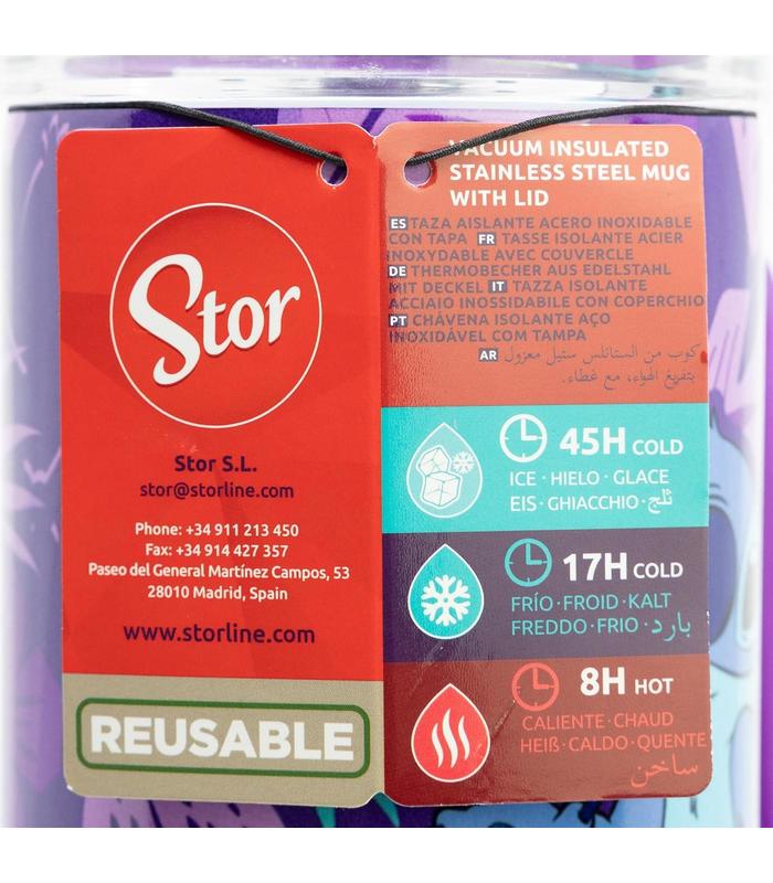 Original taza de tamaño XL, fabricada en acero inoxidable, por lo que mantiene la temperatura, y decorada con diseños de personajes más famosos de películas y series. El bebedor rotatorio y el mango convierten la taza en el compañero imprescindible de tu día a día. Gran capacidad: 940 ml Térmica: mantiene la temperatura (8h frío, 17h calor, 45h hielo) Bebedor rotatorio Libre de BPA