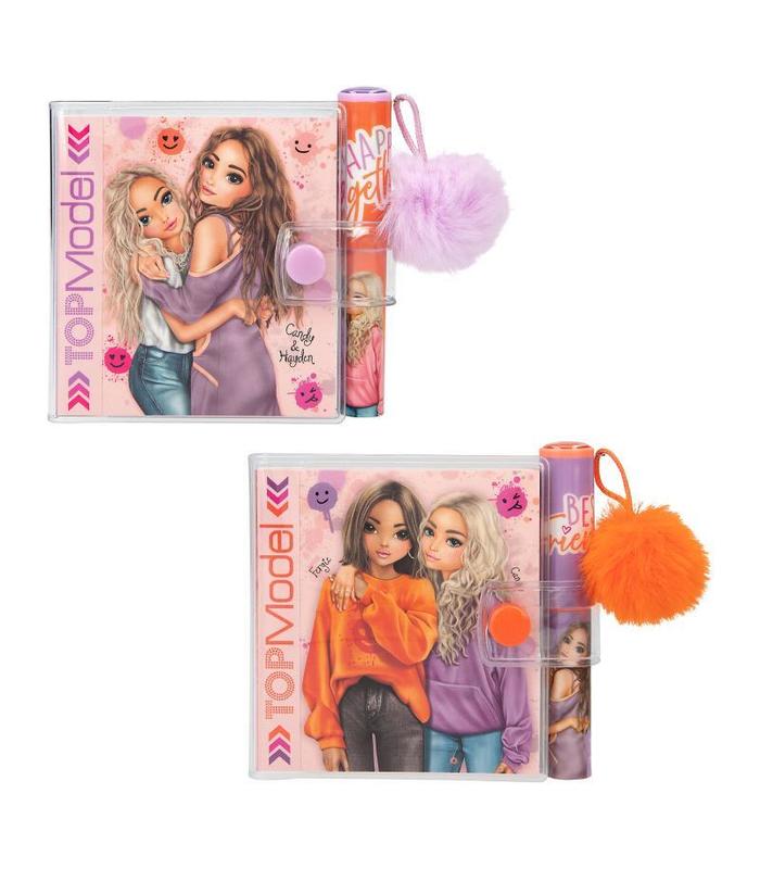Los dos sets de TOPModel se componen de bloc de notas más bolígrafo. A pesar de su pequeño tamaño, no dejan de ser prácticos y muy bonitos. Destacan los preciosos motivos de modelos, iconos monísimos, lemas cool y graciosos pompones de pelo sintético como colgante. Cada bloc tiene 80 hojas aprox. Bolígrafo de tinta azul, mina no recambiable.