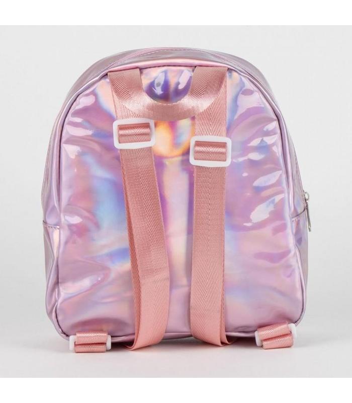 Descubre la mochila casual iridiscente Hello Kitty, un accesorio perfecto para las más pequeñas que desean llevar la magia y el encanto de Hello Kitty a todas partes. Esta mochila está elaborada en 100% PU, lo que le confiere una apariencia moderna y resistente. Su diseño en color rosa iridiscente refleja un arco iris de colores cuando es impactado por la luz, haciendo que cada ángulo sea espectacular.