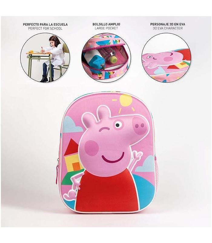 Diseño atractivo de Peppa Pig – Esta mochila infantil de Peppa Pig cuenta con estampados coloridos de personajes animados que encantarán a los niños. Perfecta para el regreso a clases, viajes o actividades diarias, su diseño llamativo la convierte en la compañera ideal.