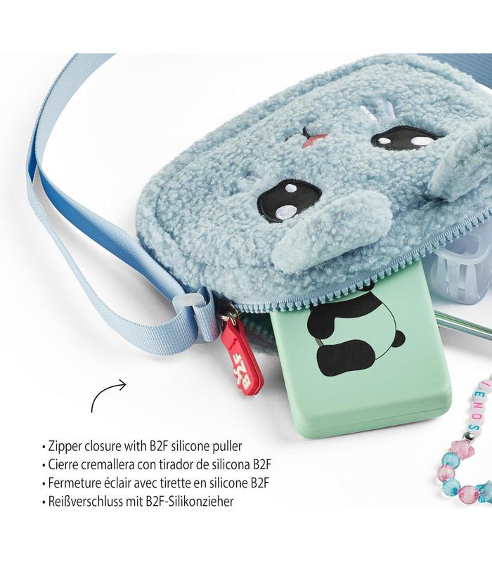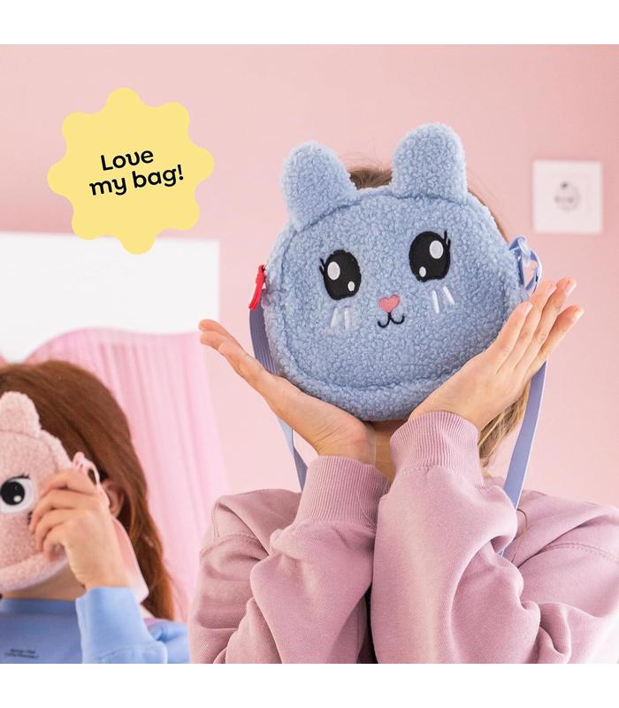 BOLSITO INFANTIL DISEÑO CONEJO ?? en azul pastel con orejitas en relieve y mirada brillante. Un bolsito adorable de Back2Fun para niñas que buscan dulzura y estilo en su día a día.