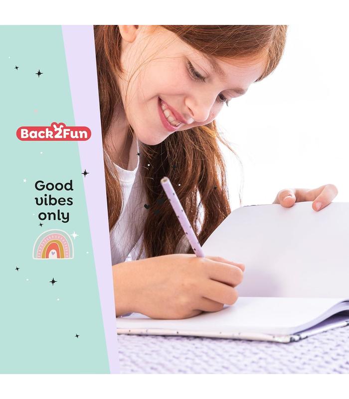 CUADERNO RAYADO DE 80 HOJAS ?? tamaño similar A5 (148 x 210 x 14 mm), con papel de 80 g/m² y líneas suaves para facilitar la escritura. Perfecto para el día a día, ideas, deberes o notas de vuelta al cole.