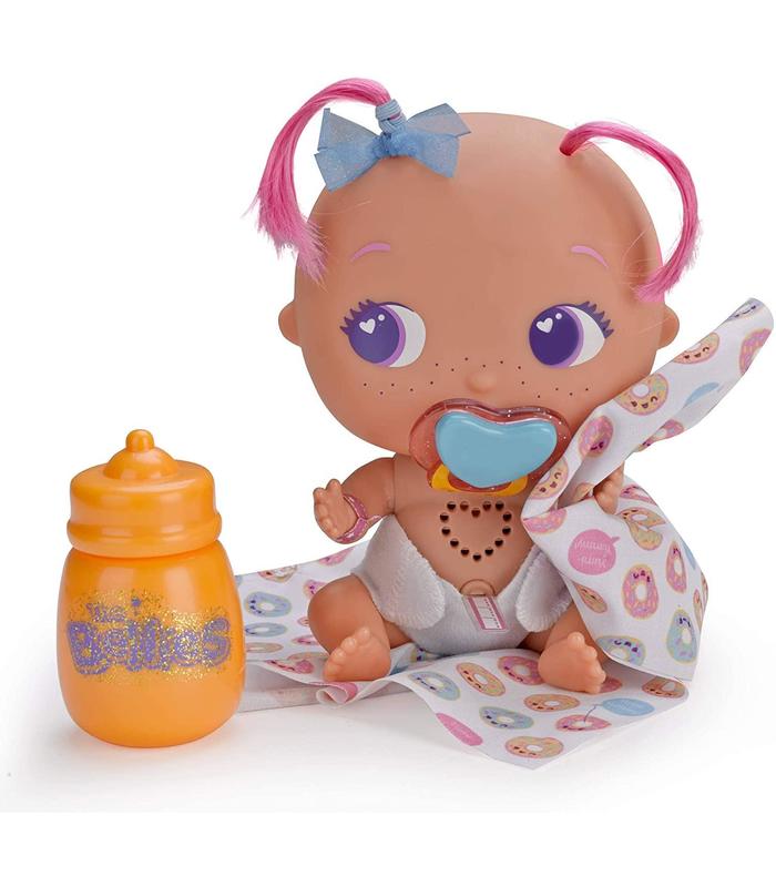 Incluye biberón, chupete, mantita personalizada y poopypedia; funciona con 3 pilas aaa, también incluidas