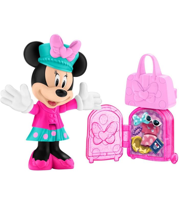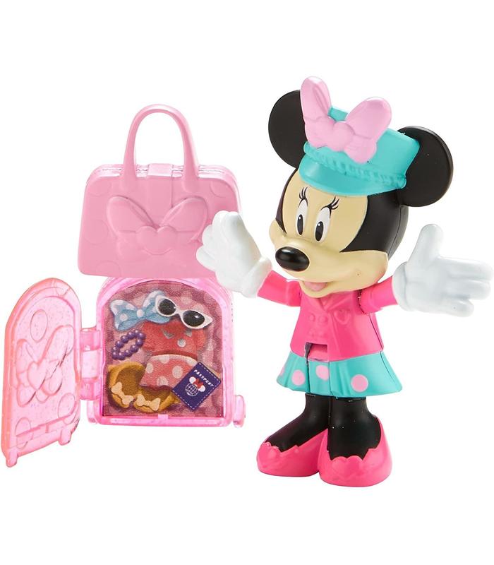 3 pulgadas (7, 62cm) figura de Minnie pack Incluye figura poseable, maleta y bolso de mano Monedero de mano encaje en la parte superior del equipaje Monedero se abre para revelar lo que ha incluido Minnie Figura poseable cuenta con dos puntos de articulación