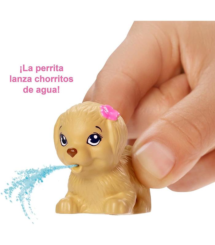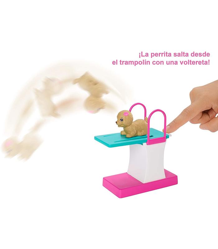 Puedes crear miles de aventuras con las muñecas Barbie inspiradas en barbie Dreamhouse Adventures. Esta Barbie nada y bucea vestida con un bañador a rayas deportivas y detalles brillantes. Cuando esté lista para lanzarse al agua, aprieta la palanca de su cintura para ver cómo mueve las piernas como si estuviese nadando. Incluye el cachorrito de Barbie, puedes colocarlo en el trampolín para ver cómo da vueltas o llénalo de agua y aprieta, ¡Lanza chorritos!. Ponle a Barbie las gafas de bucear y practica el salto perfecto desde el trampolín o juega con la pelota de Waterpol. Cuando te canses de chapotear, ponle el accesorio de medalla y relájate con una botella de agua, sandalias y una toalla. Es un juguete ideal para las futuras atletas, les encantará vivir aventuras llenas de acción e imaginar grandes historias deportivas porque cuando una niña juega con Barbie, imagina todo lo que puede llegar a ser. Colecciona todas las muñecas y juguetes de Barbie Dreamhouse Adventures para recrear tus momentos preferidos e inventar tus propias historias.