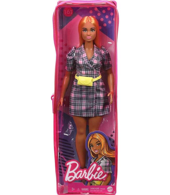 La muñeca Barbie morenita luce un look súper moderno y a la última, la llamativa Blazer de cuadros como vestido y el súper accesorio, la riñonera, que sirve de cinturón y le da el toque de glamour. La última línea de muñecas Barbie Fashionistas incluye muñecas con diferentes tipos de cuerpo, tonos de piel, colores de ojos, colores de pelo, peinados y un montón de conjuntos a la última ¡Cada muñeca Barbie luce un traje único que destaca por su personalidad y estilo! Los divertidos accesorios de moda, como un par de zapatos o una pulsera, completan cada look Los peinados ensalzan aún más la diversidad, ya que presentan distintas texturas, colores y estilos. No recomendable para menores de 3 años, ya que contiene piezas pequeñas que podrían provocar asfixia en caso de ser ingeridas por el niño/a.