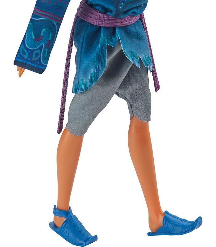 CONJUNTO INSPIRADO EN LA PELÍCULA: Vestida con su camiseta azul, su cinturón morado y sus pantalones cortos grises, esta muñeca de Sisu está preparada para la aventura