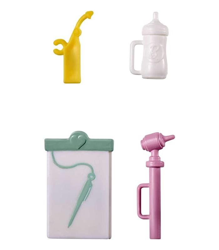 La muñeca Barbie Pediatra puede examinar al pequeño paciente con su estetoscopio, usar el termómetro, examinarlo con el osciloscopio, tomar notas en el historial médico y alimentar al bebé con el biberón para que esté feliz y sano