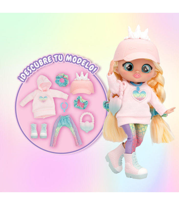 REVER, Stella! íAhora tus personajes favoritos de los Bebés Llorones Lágrimas Mágicas han crecido y son adolescentes! Stella tiene 13 años y vive muchas aventuras junto a sus BFF. Hay 6 personajes para coleccionar, todos visten con ropita de moda. íStella tiene el pelo largo de nailon, ojos de cristal y el cuerpo articulado! íGira el cilindro para encontrarla! Abre el packaging y descubre su armario con más de 7 sorpresas: 2 prendas de ropa, un bolso, una diadema o un sombrero, unos zapatos a juego con calcetines o medias y íun collar!