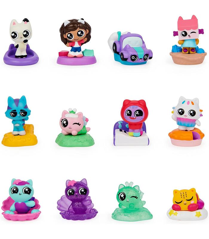 MINIFIGURAS SORPRESA: En cada cápsula de casa de muñeca, encontrarás 1 figura y 1 base accesorio para exhibirla. Colecciona 12 gatásticos personajes, incluidas figuras exclusivas y brillantes de Kitty Fairy y MerCat (se venden por separado).
