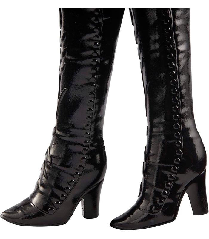Esta muñeca de moda articulada de Anna lleva su conjunto de viaje negro y morado, formado por una capa y una falda delicadas y unas botas, todas intercambiables.