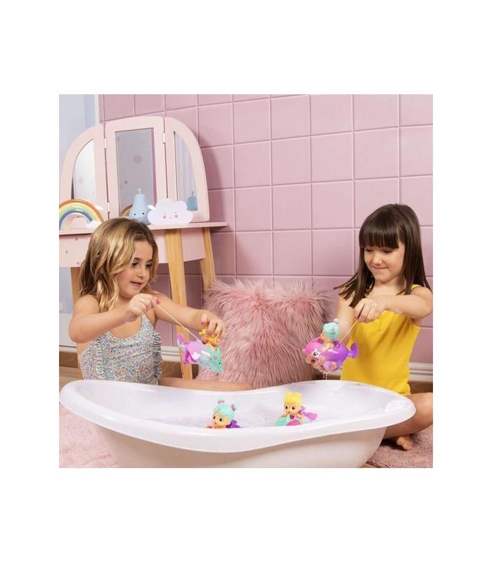 ¡Descubre las nuevas y divertidas Floaties Dolphins, las compañeras de baño más maravillosas! ¡Nadan con unos mágicos y preciosos delfines! Cuando ponga la Floatie Dolphins Pearl en el agua y tires de la cuerda... ¡Se moverá como si nadara de verdad! ¡Hay 6 muñecas diferentes para coleccionar!