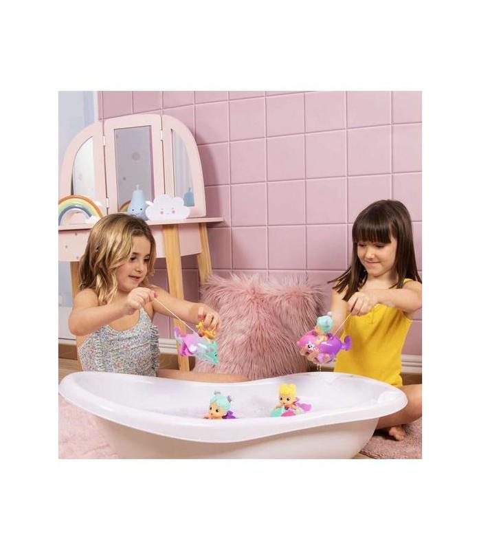 ¡Descubre las nuevas y divertidas Floaties Dolphins, las compañeras de baño más maravillosas! ¡Nadan con unos mágicos y preciosos delfines! Cuando ponga la Floatie Dolphins Pearl en el agua y tires de la cuerda... ¡Se moverá como si nadara de verdad! ¡Hay 6 muñecas diferentes para coleccionar!