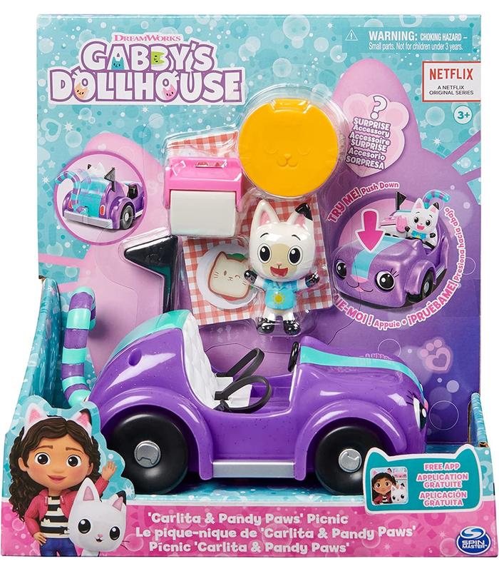 Incluye: 1 vehículo, 1 figura, 1 caja sorpresa, 2 accesorios, 1 manta de pícnic de cartón, 1 hoja de instrucciones