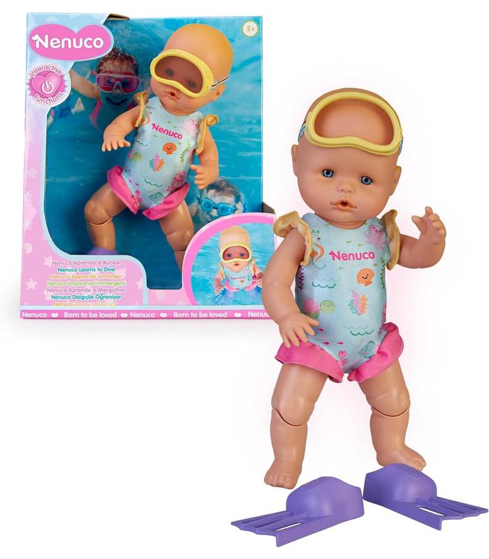 Nenuco no solo puede nadar solo, sino que también está diseñado para sumergirse y aprender a bucear con la ayuda de los niños. Esta característica interactiva permite a los niños participar activamente en el juego, desarrollando sus habilidades motoras finas y fomentando la coordinación mano-ojo.