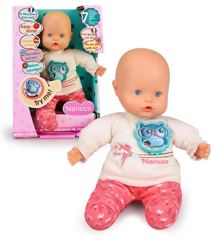 Nuestro muñeco Nenuco interactivo ofrece una experiencia de juego envolvente gracias a su capacidad para hablar en 7 idiomas diferentes. Desde el inglés y el español hasta el chino o griego, es una excelente herramienta para fomentar el aprendizaje de idiomas de una manera divertida y emocionante.