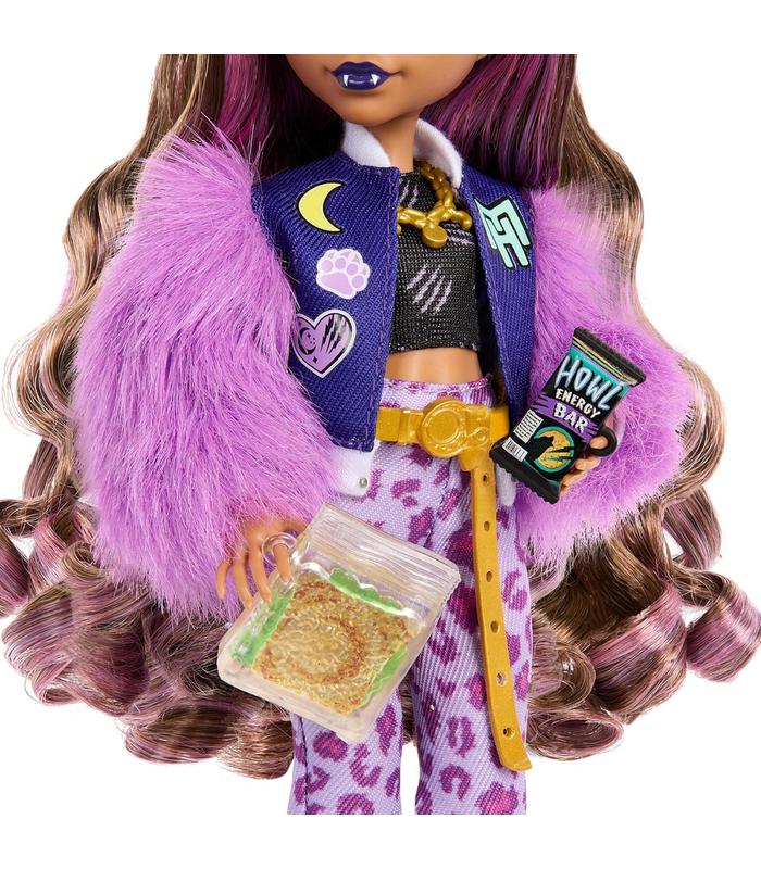 El atuendo elegante y aterrador de la muñeca Clawdeen Wolf, de Monster High, le da un aspecto fabuloso. Viene con su mascota Crescent y varios accesorios que te harán aullar de la emoción.