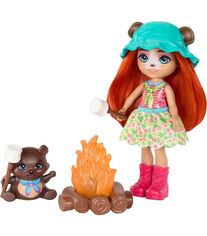 Con una tienda de campaña, una hoguera y otros accesorios, la muñeca y el conjunto de juego de Enchantimals recrean una agradable experiencia de campamento para una muñeca y su grupo de adorables mascotas, que son sus mejores amigos.