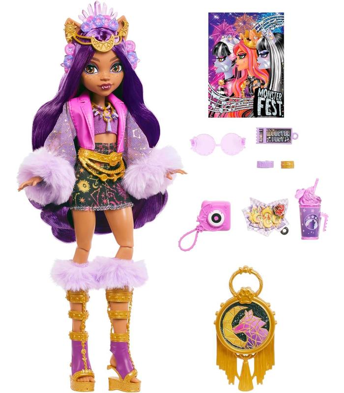 La muñeca de Clawdeen Wolf de Monster High ha conseguido una entrada para el Monster Fest, ¡el festival de música más guay del mundo! Con su llamativo look y sus accesorios feroztásticos, está deseando comer, bailar y dar miedo.