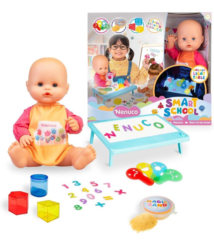 Nenuco Smart School ofrece una experiencia única con su mesa de luz multicolor y accesorios translúcidos. Los niños pueden disfrutar de un aula sensorial completa en casa, transformando el aprendizaje en un juego lleno de colores y luces.