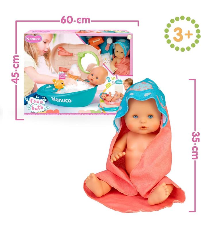 Diseñado para niños a partir de los 3 años, Nenuco Baño de Espuma ofrece una combinación de juego interactivo y educativo. Con su tamaño de 35 cm y cuerpo duro, es perfecto para ser el mejor amigo en aventuras de baño y cuidado.