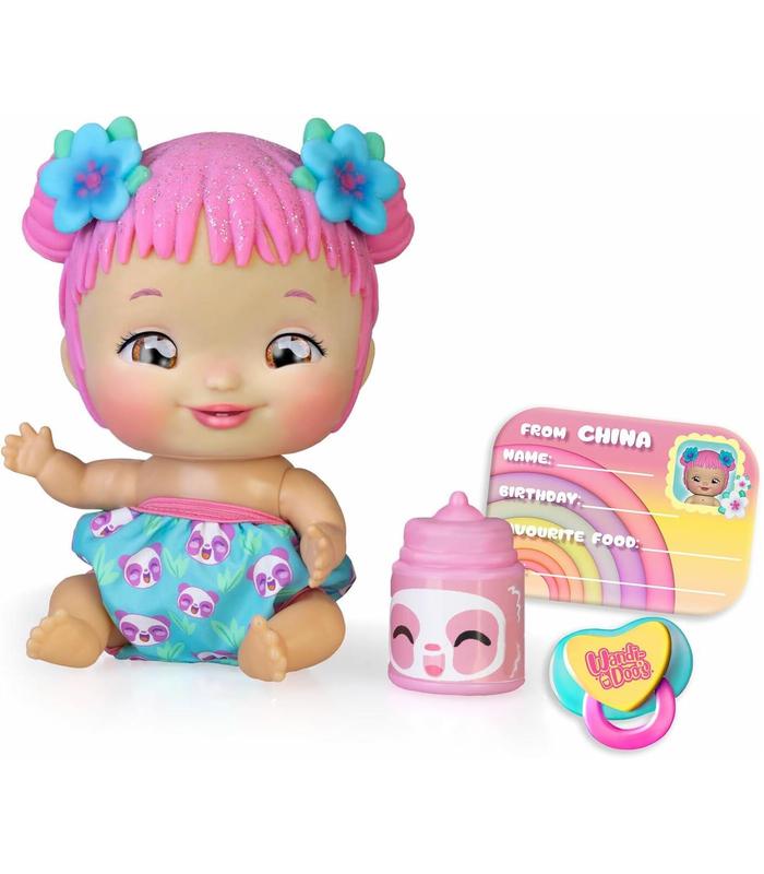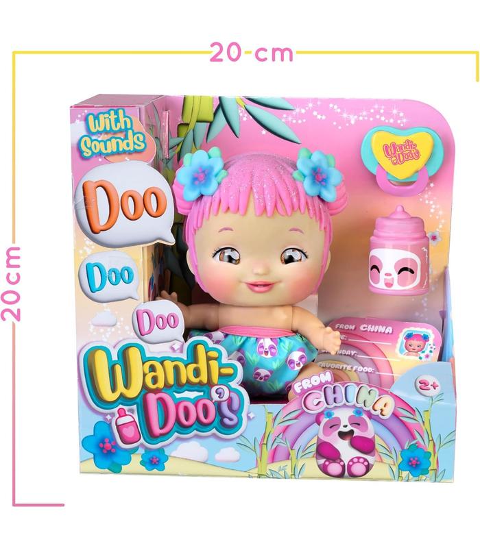 Wandi-Doo From China se comunica en el lenguaje universal de los bebés, diciendo "doo, doo, doo". Este adorable bebé muestra emociones, se ríe, se enfada y bosteza cuándo tiene sueño, ofreciendo una experiencia interactiva y realista.