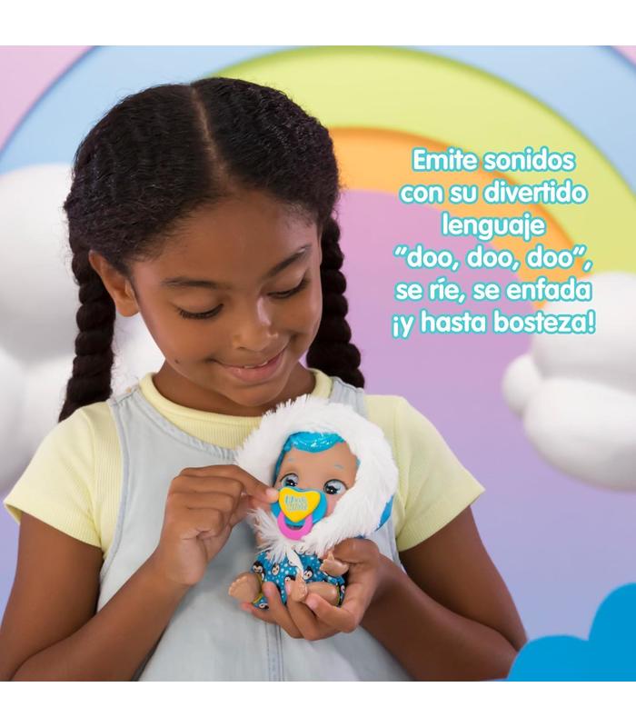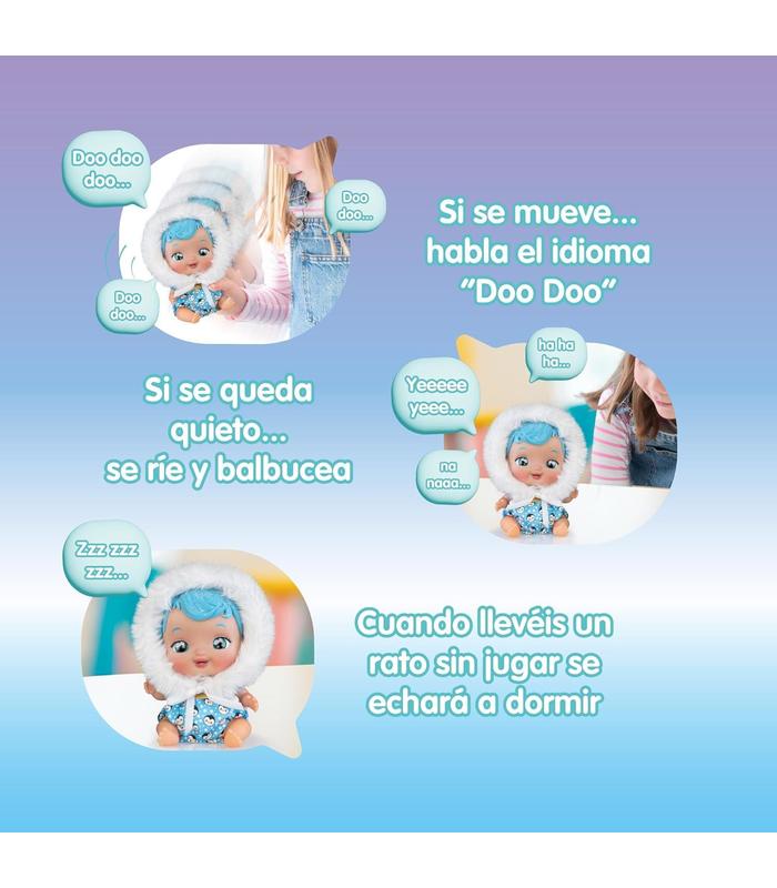 Wandi-Doo From North Pole se comunica en el lenguaje universal de los bebés, diciendo "doo, doo, doo". Este adorable bebé muestra emociones, se ríe, se enfada y bosteza cuándo tiene sueño, ofreciendo una experiencia interactiva y realista.