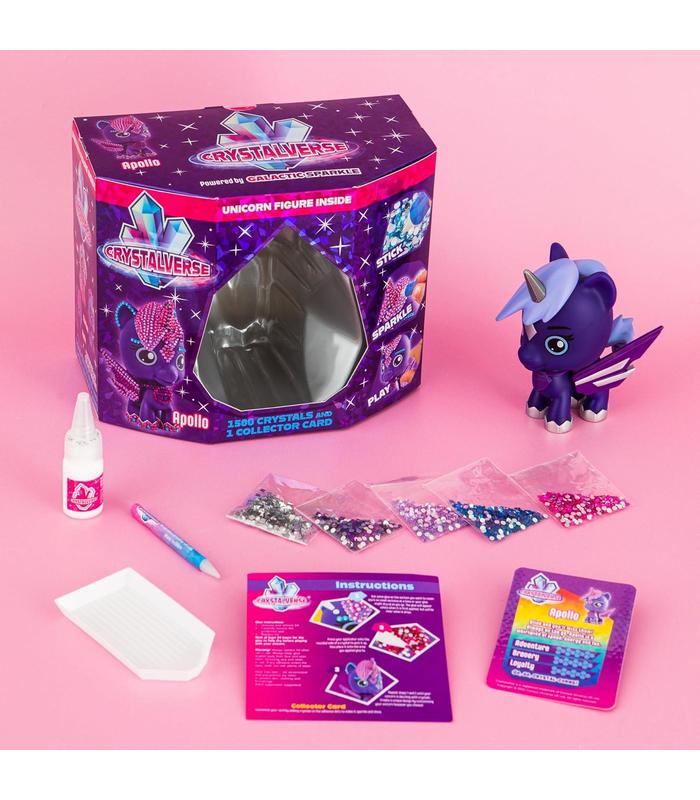 Incluye un unicornio, 1500 cristales de colores, 1 hoja coleccionable (para cristalizar), bandeja, pegamento & aplicador y manual de instrucciones