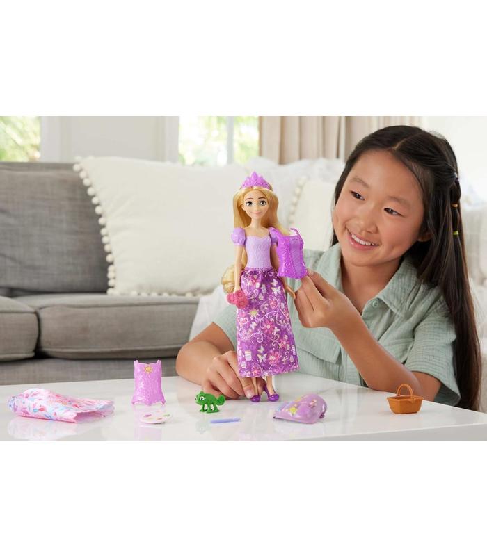La muñeca de moda Historias de Rapunzel 2 en 1 de Disney Princesas tiene atuendos y accesorios temáticos para que los peques recreen dos historias distintas.